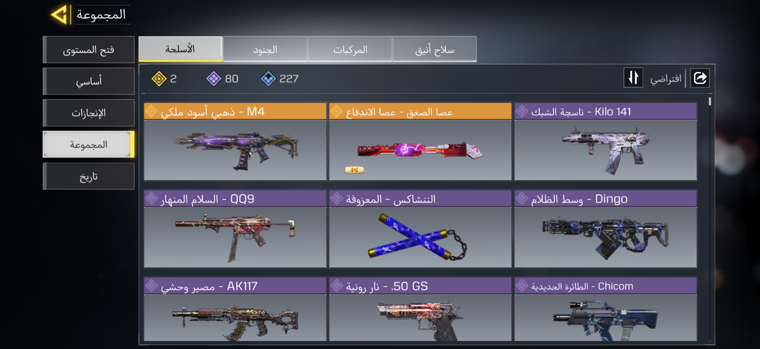 الشخصيات والاسلحة جميعها موضحه بالصور